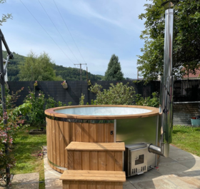 C’est la forme ancestrale du Bain scandinave avec son poêle intégré et sa façade inoxydable.