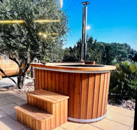 Par sa taille, il peut accueillir 6 à 8 adultes. Par son esthétique avec son poêle à bois intégré traditionnel et l’ergonomie de sa banquette associée à sa qualité de massage.