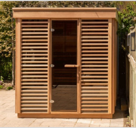 Le Sauna Cocon d’extérieur est parfait pour les petits espaces. Ses dimensions 1,50 x 1,57m sont idéal pour un patiot ou bien encore une petite terrasse. Il dispose d’un banc en forme de L pour un accueil de 2 à 3 personnes.